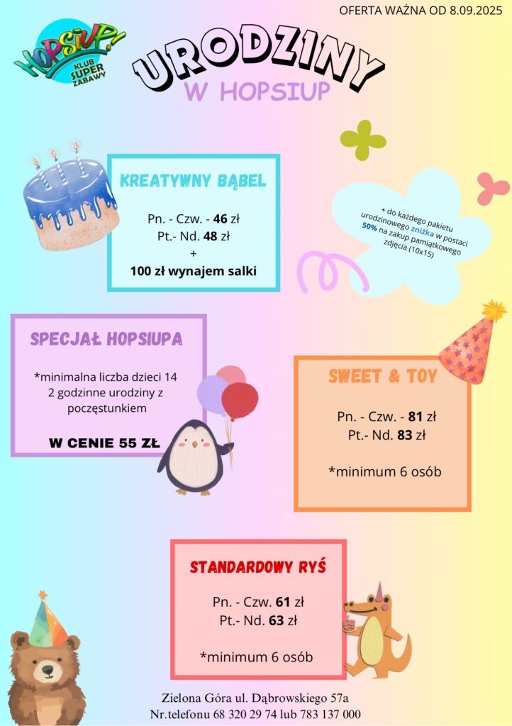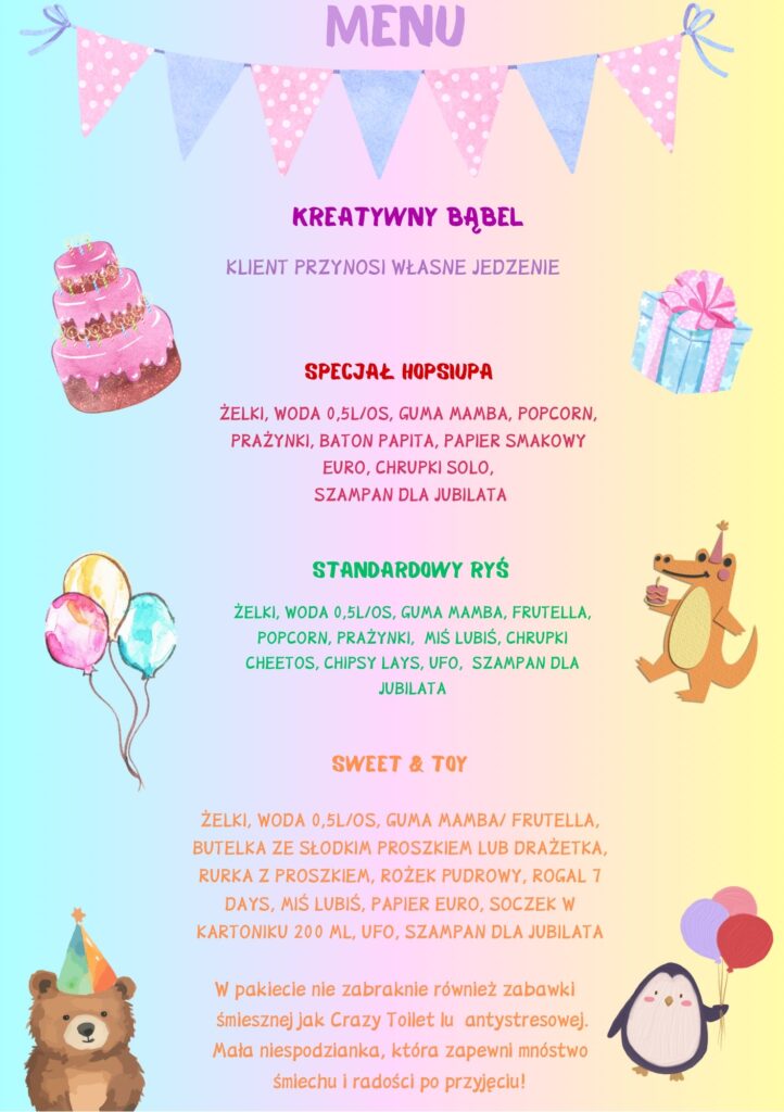– braku opłat za Jubilata oraz 30 min. zabawy GRATIS dla całej grupy na Sali Głównej